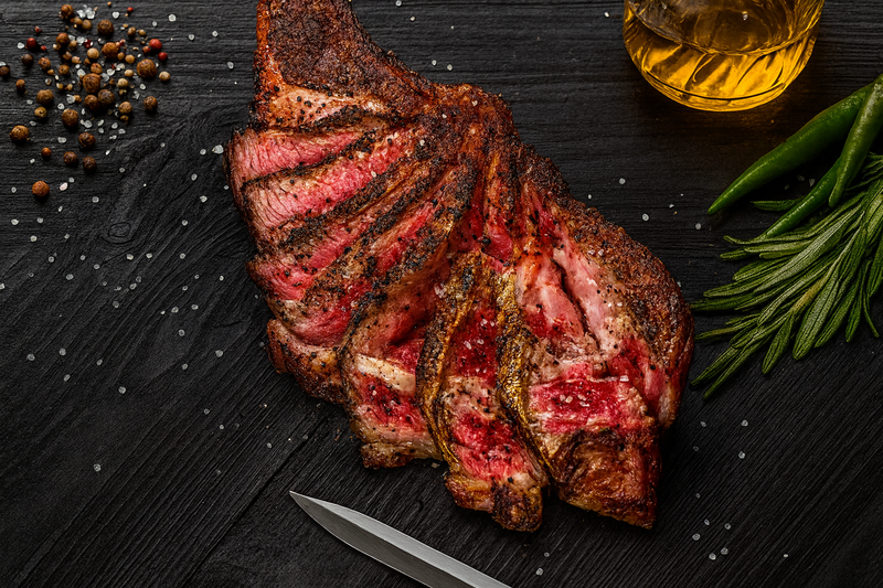 La Vaca Vetusta es un homenaje al tiempo, la paciencia y la libertad. Criadas en libertad y alimentadas de forma natural durante más de una década —a veces hasta veinte años, muy por encima de los cuatro habituales en la ganadería— desarrollan una carne irrepetible: rica en vetas de grasa infiltrada, con un sabor profundo y una textura que solo el paso del tiempo sabe otorgar. Cada corte es un tributo a la naturaleza y a la vida bien vivida, donde lo excepcional se convierte en sublime.